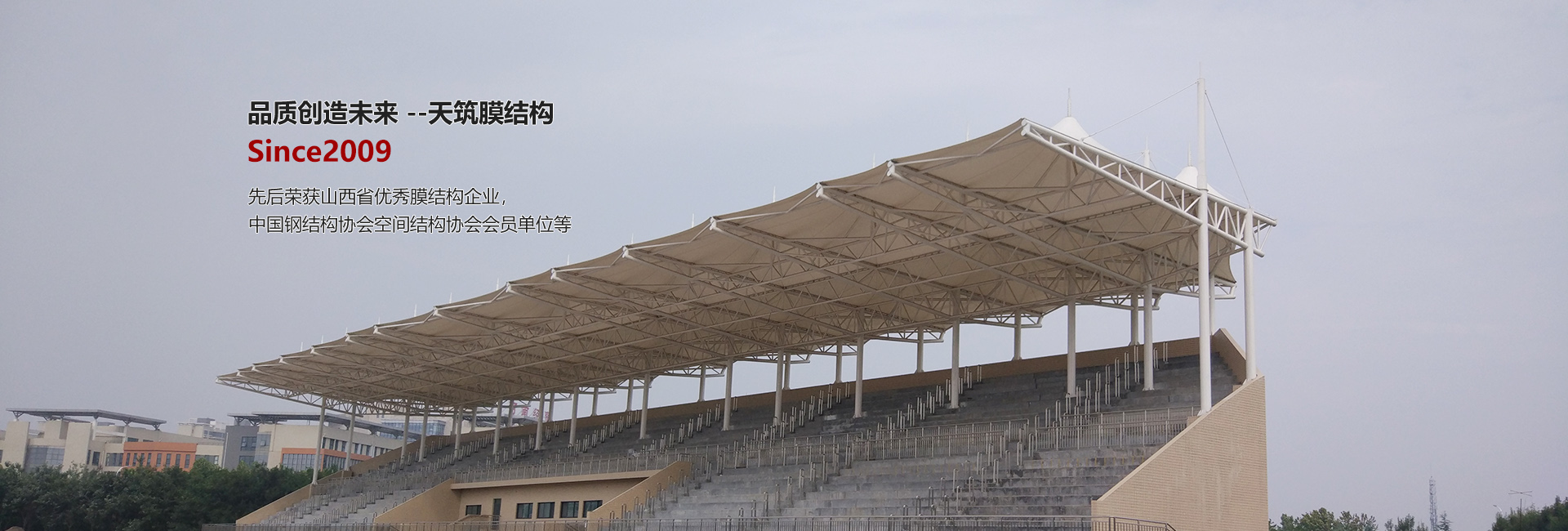 太原天筑膜結(jié)構(gòu)技術(shù)有限公司主要從事膜結(jié)構(gòu)工程的方案設(shè)計、結(jié)構(gòu)設(shè)計、靜動力計算分析、膜材的裁剪設(shè)計、膜材的加工制作安裝、鋼構(gòu)件的設(shè)計加工整體安裝及使用維護,集科研開發(fā)與制作安裝為一體的科研生產(chǎn)型企業(yè)。服務(wù)范圍涉及電動車/自行車車棚、汽車停車棚、廣場公園景觀張拉膜、新能源充電樁膜結(jié)構(gòu)雨棚、體育場看臺膜結(jié)構(gòu)、加油站收費站膜結(jié)構(gòu)大棚、表演舞臺膜結(jié)構(gòu)雨棚、廊道遮陽棚、永久性膜結(jié)構(gòu)建筑遮陽棚、污水池膜結(jié)構(gòu)封閉、充氣膜等膜結(jié)構(gòu)工程的設(shè)計、制作加工安裝、售后維修服務(wù)。公司立足太原,輻射華北、華中地區(qū)數(shù)十省,是華北地區(qū)專業(yè)性、規(guī)模型的膜結(jié)構(gòu)工程企業(yè)之一。公司成立以來,組織承建了520余項近36萬平方米的膜結(jié)構(gòu)工程……
